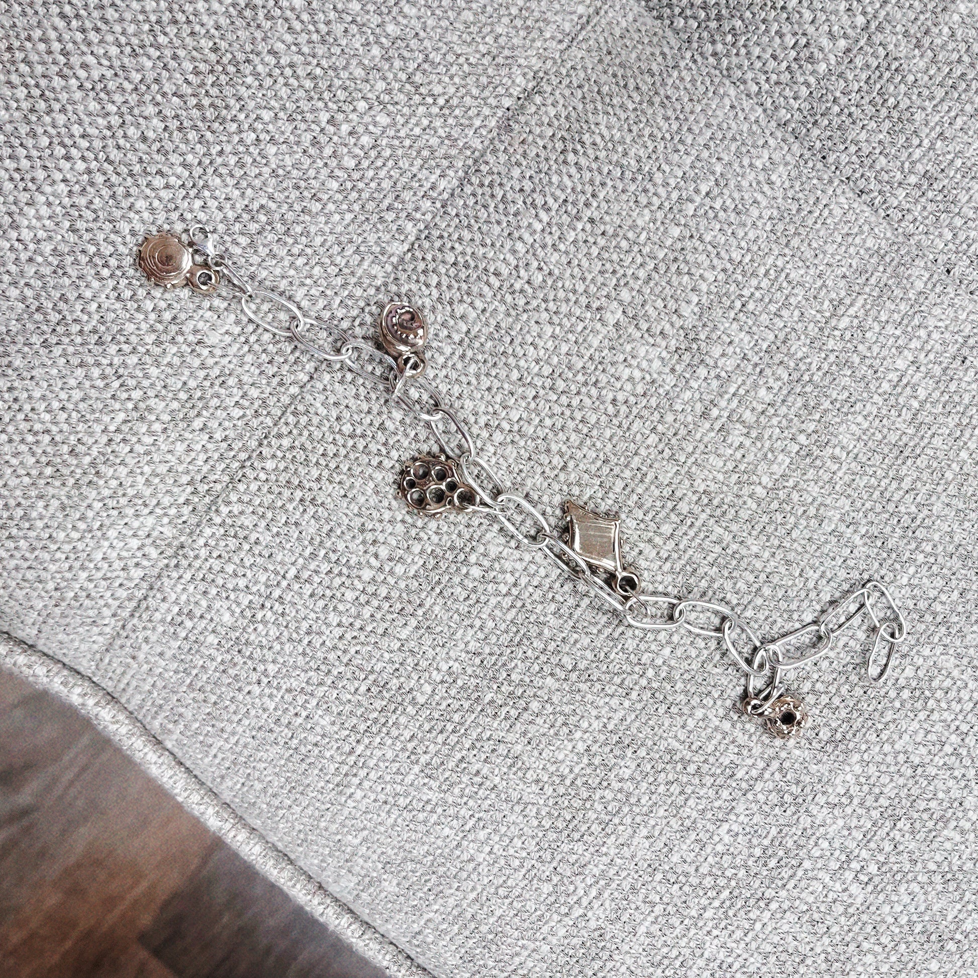A playful mixed metal bracelet using the lost wax casting method in recycled sterling silver chain (adjustable) and brass (the charms).