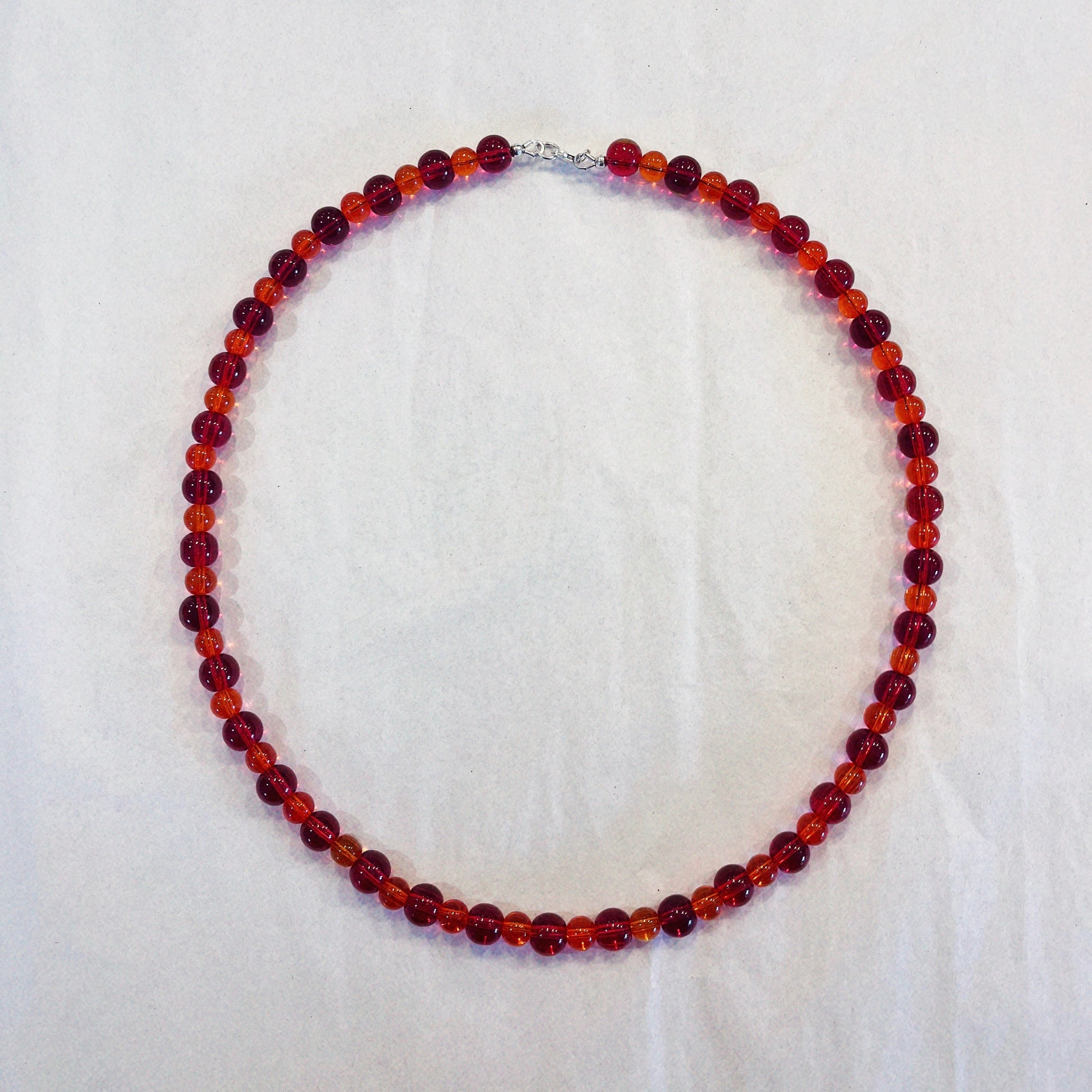 This lovely piece sits around 45 cm long and is made out of glass beads, 14 strand steel string recycled sterling silver fastenings for a hypoallergenic finish.