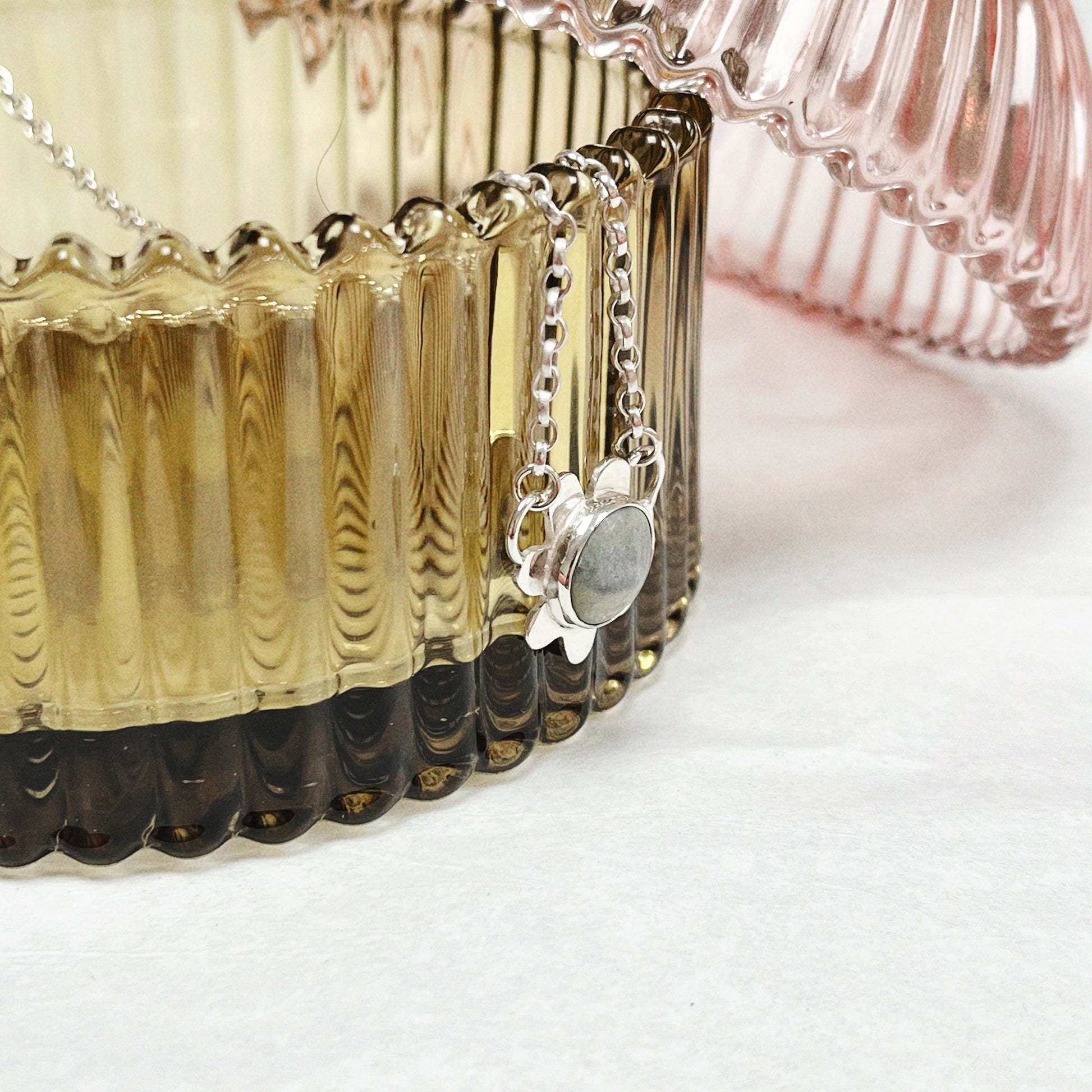 A take on our classic pool rings, this lovely charm holds a beautiful piece of Highland marble on a 45 cm belcher chain. This piece is made from recycled sterling silver.